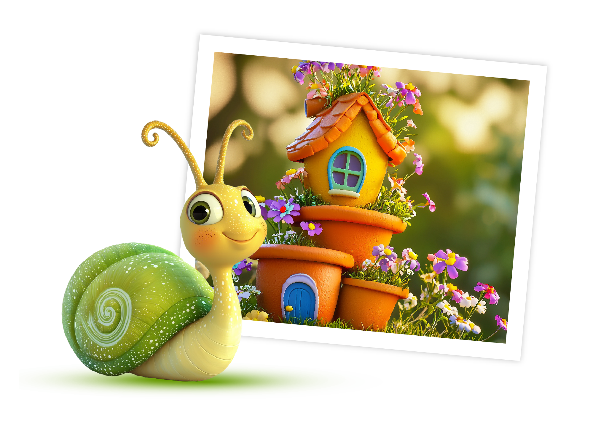 Cleo & Clover live in the big oak tree overlooking PLANTOPIA. Their RAINBOW HOUSE is made of evergreen and flowers that change color throughout the seasons as the flowers bloom. It’s a rainbow house!…just like their wings!